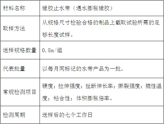 材料名稱:橡膠止水帶(遇水膨脹橡膠)